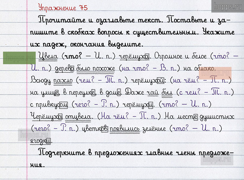Готовые ответы к 75 упражнению 2 части рабочей тетради по русскому языку для учащихся 3 класса, авторов Л.Ф. Климанова, Т.В. Бабушкина, Перспектива, 2021 г.