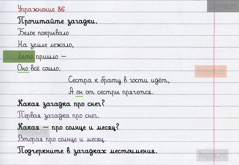 Готовые ответы к 86 упражнению 2 части рабочей тетради по русскому языку для учащихся 3 класса, авторов Л.Ф. Климанова, Т.В. Бабушкина, Перспектива, 2021 г.