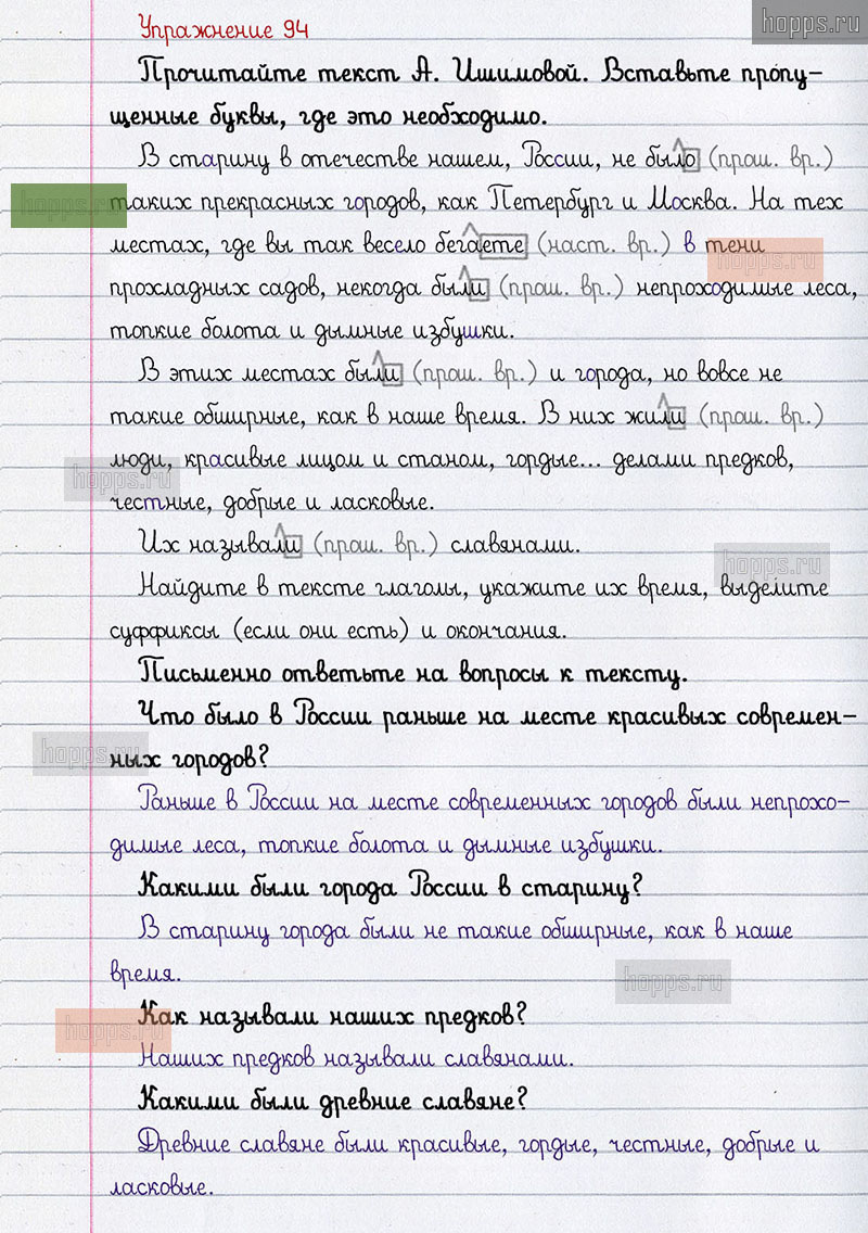 Готовые ответы к 94 упражнению 2 части рабочей тетради по русскому языку для учащихся 3 класса, авторов Л.Ф. Климанова, Т.В. Бабушкина, Перспектива, 2021 г.
