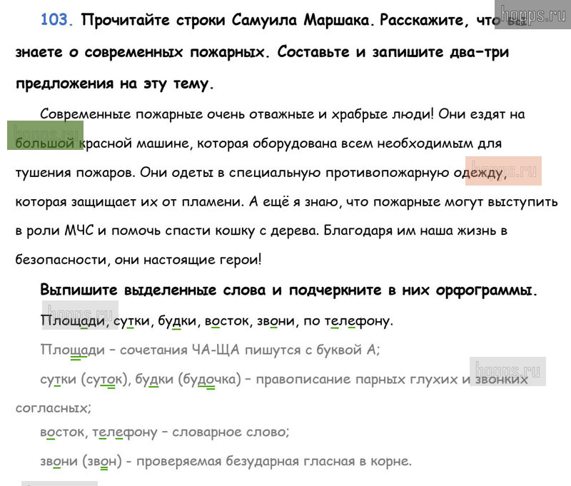 Готовые ответы к 103 упражнению 1 части учебника по русскому языку для учащихся 3 класса, авторов Л.Ф. Климанова, Т.В. Бабушкина, Перспектива, 2019 г.