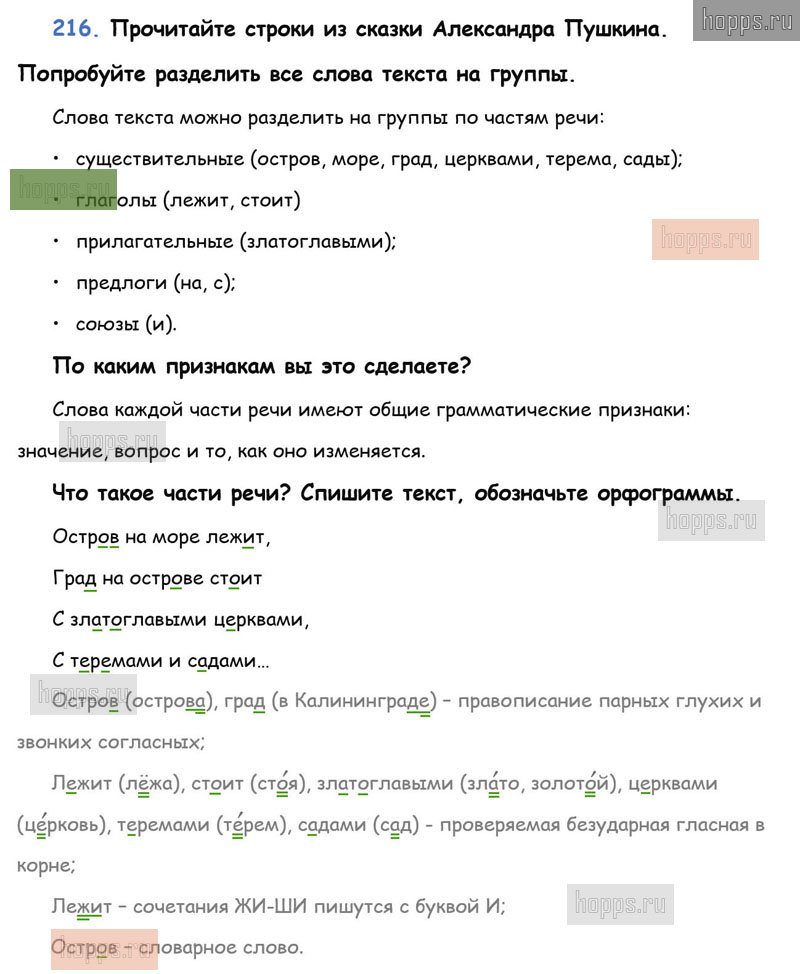 Готовые ответы к 216 упражнению 1 части учебника по русскому языку для учащихся 3 класса, авторов Л.Ф. Климанова, Т.В. Бабушкина, Перспектива, 2019 г.
