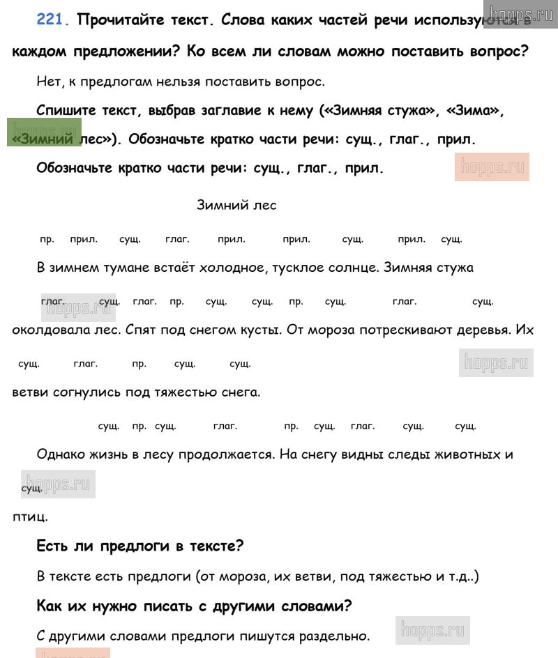 Готовые ответы к 221 упражнению 1 части учебника по русскому языку для учащихся 3 класса, авторов Л.Ф. Климанова, Т.В. Бабушкина, Перспектива, 2019 г.