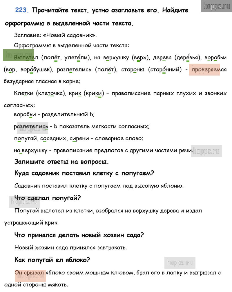 Готовые ответы к 223 упражнению 1 части учебника по русскому языку для учащихся 3 класса, авторов Л.Ф. Климанова, Т.В. Бабушкина, Перспектива, 2019 г.