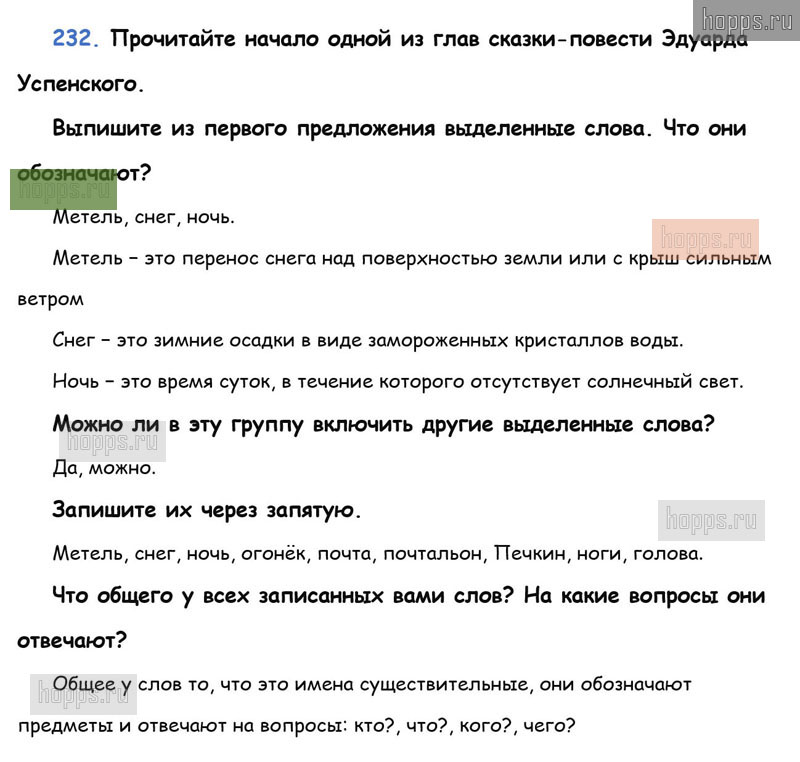 Готовые ответы к 232 упражнению 1 части учебника по русскому языку для учащихся 3 класса, авторов Л.Ф. Климанова, Т.В. Бабушкина, Перспектива, 2019 г.