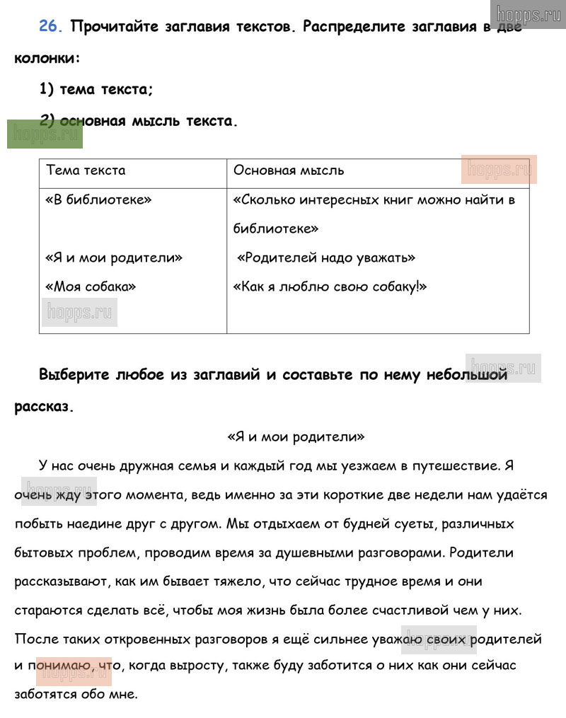 Готовые ответы к 26 упражнению 1 части учебника по русскому языку для учащихся 3 класса, авторов Л.Ф. Климанова, Т.В. Бабушкина, Перспектива, 2019 г.