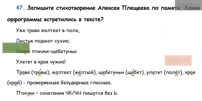 Готовые ответы к 47 упражнению 1 части учебника по русскому языку для учащихся 3 класса, авторов Л.Ф. Климанова, Т.В. Бабушкина, Перспектива, 2019 г.