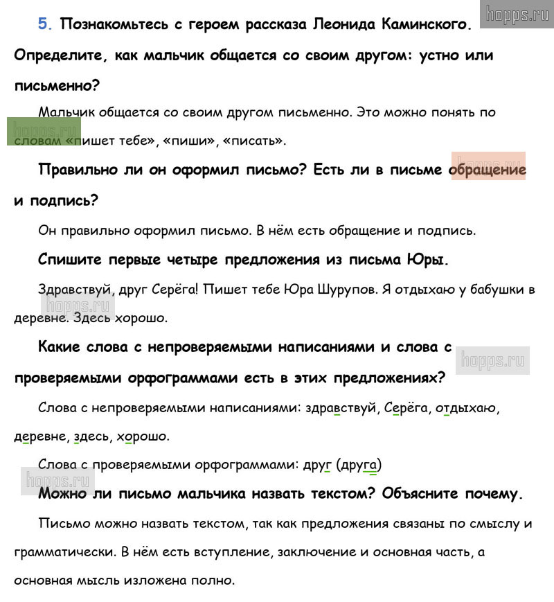 Готовые ответы к 5 упражнению 1 части учебника по русскому языку для учащихся 3 класса, авторов Л.Ф. Климанова, Т.В. Бабушкина, Перспектива, 2019 г.