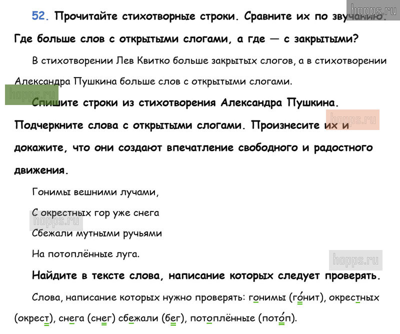 Готовые ответы к 52 упражнению 1 части учебника по русскому языку для учащихся 3 класса, авторов Л.Ф. Климанова, Т.В. Бабушкина, Перспектива, 2019 г.