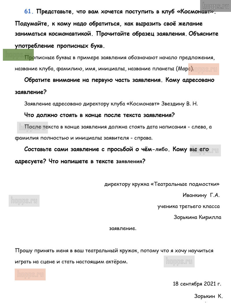 Готовые ответы к 61 упражнению 1 части учебника по русскому языку для учащихся 3 класса, авторов Л.Ф. Климанова, Т.В. Бабушкина, Перспектива, 2019 г.