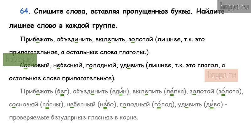 Готовые ответы к 64 упражнению 1 части учебника по русскому языку для учащихся 3 класса, авторов Л.Ф. Климанова, Т.В. Бабушкина, Перспектива, 2019 г.