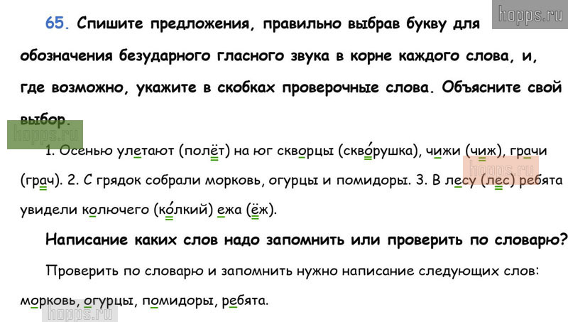 Готовые ответы к 65 упражнению 1 части учебника по русскому языку для учащихся 3 класса, авторов Л.Ф. Климанова, Т.В. Бабушкина, Перспектива, 2019 г.