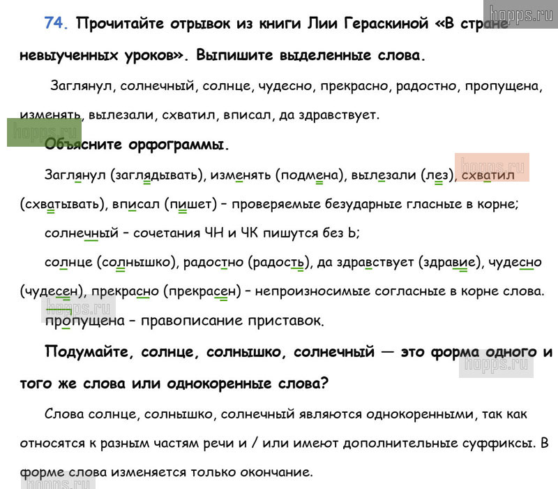 Готовые ответы к 74 упражнению 1 части учебника по русскому языку для учащихся 3 класса, авторов Л.Ф. Климанова, Т.В. Бабушкина, Перспектива, 2019 г.