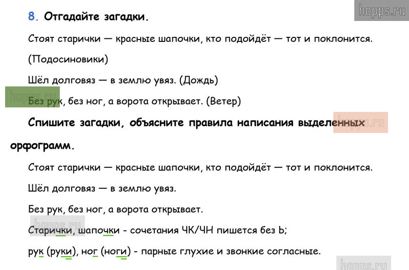 Готовые ответы к 8 упражнению 1 части учебника по русскому языку для учащихся 3 класса, авторов Л.Ф. Климанова, Т.В. Бабушкина, Перспектива, 2019 г.