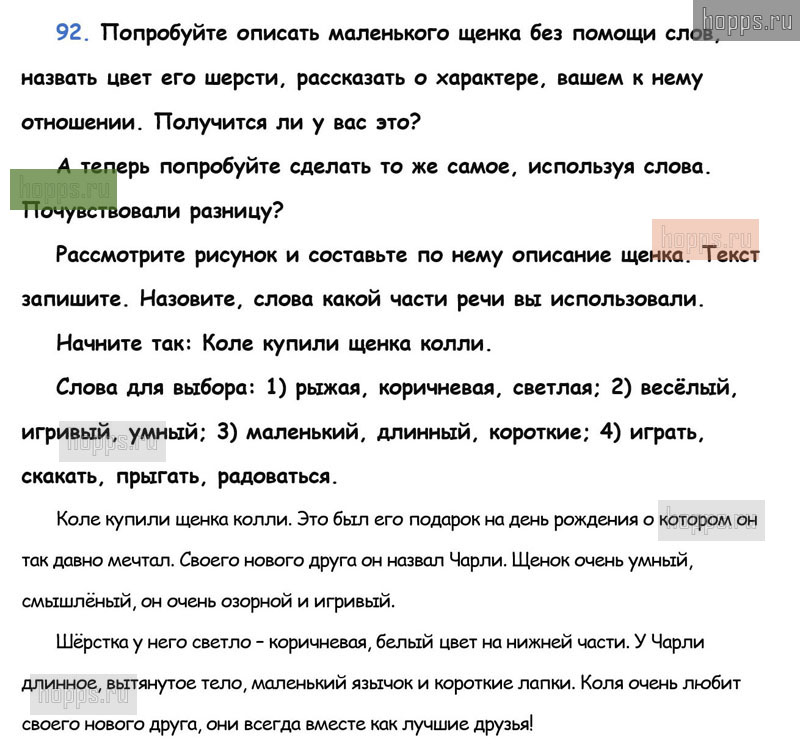 Готовые ответы к 92 упражнению 1 части учебника по русскому языку для учащихся 3 класса, авторов Л.Ф. Климанова, Т.В. Бабушкина, Перспектива, 2019 г.