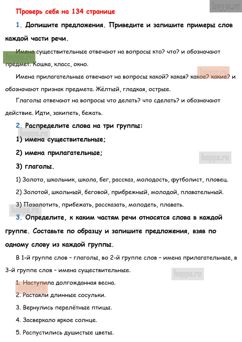 Готовые ответы к заданиям Проверь себя на 134 странице 1 части учебника по русскому языку для учащихся 3 класса, авторов Л.Ф. Климанова, Т.В. Бабушкина, Перспектива, 2019 г.