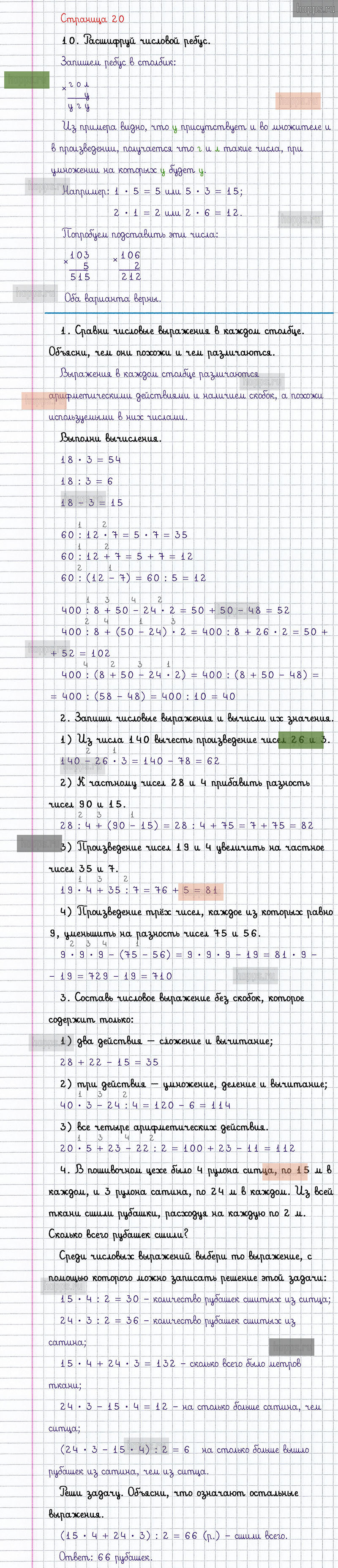 Готовые ответы к вопросам и заданиям на 20 странице 1 части учебника по математике для учащихся 4 класса, авторов Г.В. Дорофеев, Т.Н. Миракова, Т.Б. Бука, Перспектива, 2019 г.