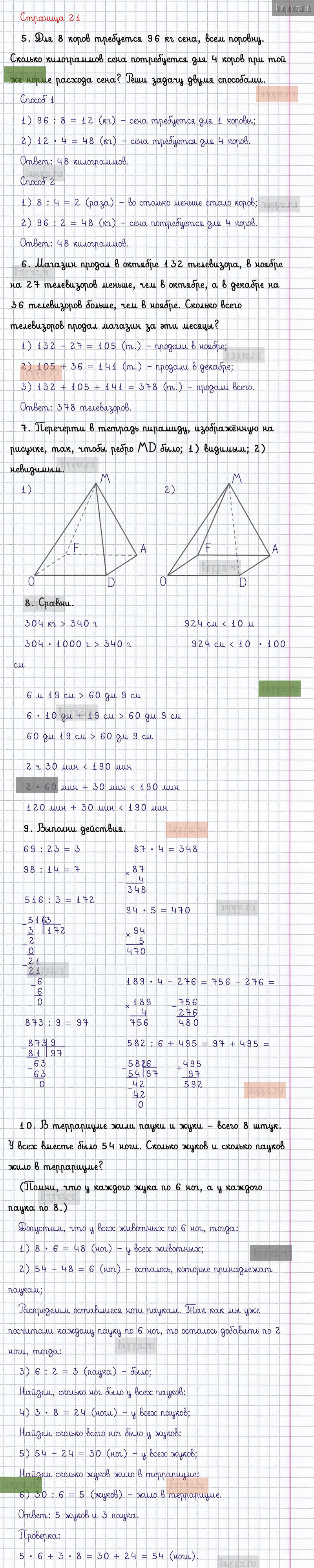 Готовые ответы к вопросам и заданиям на 21 странице 1 части учебника по математике для учащихся 4 класса, авторов Г.В. Дорофеев, Т.Н. Миракова, Т.Б. Бука, Перспектива, 2019 г.