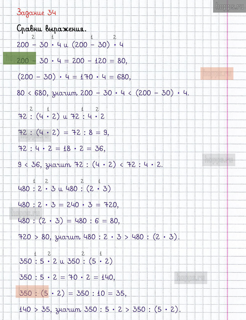 Готовые ответы к 34 заданию 1 части учебника по математике для учащихся 4 класса, автора М.И. Моро, Школа России, 2020 г.