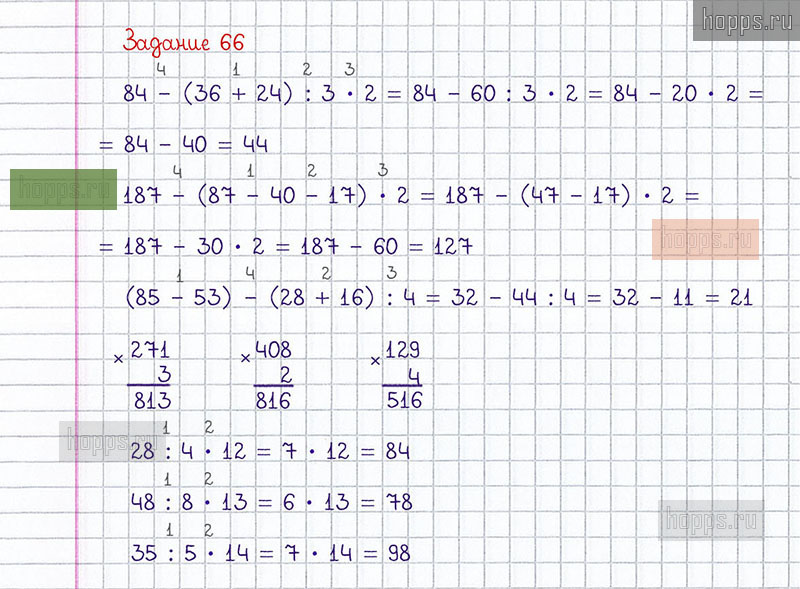 Готовые ответы к 66 заданию 1 части учебника по математике для учащихся 4 класса, автора М.И. Моро, Школа России, 2020 г.