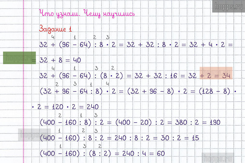 Готовые ответы к 1 заданию «Что узнали. Чему научились» на 18-19 странице 1 части учебника по математике для учащихся 4 класса, автора М.И. Моро, Школа России, 2020 г.
