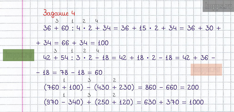 Готовые ответы к 4 заданию «Что узнали. Чему научились» на 18-19 странице 1 части учебника по математике для учащихся 4 класса, автора М.И. Моро, Школа России, 2020 г.