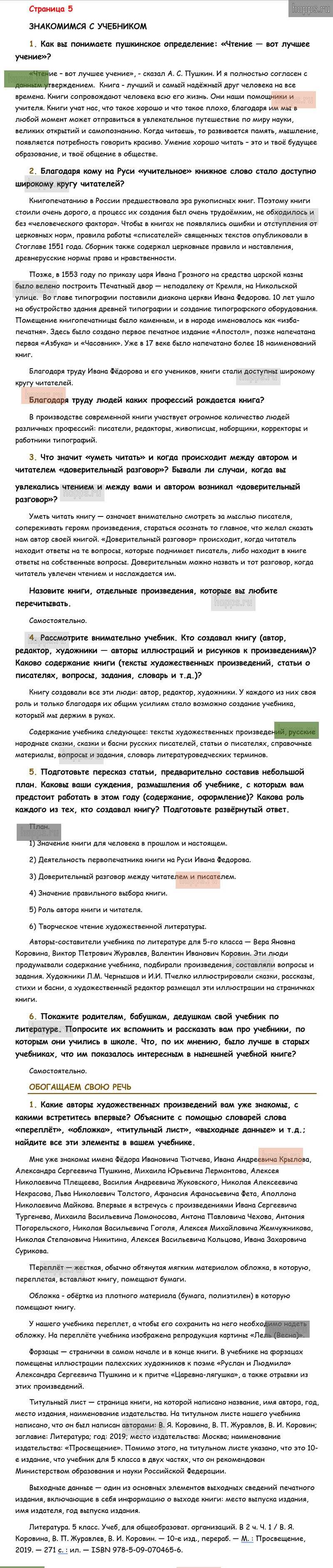 ГДЗ к 5 странице учебника по литературе В.Я. Коровина, В.П. Журавлев, В.И. Коровин за 5 класс 1 часть | Источник: hopps.ru