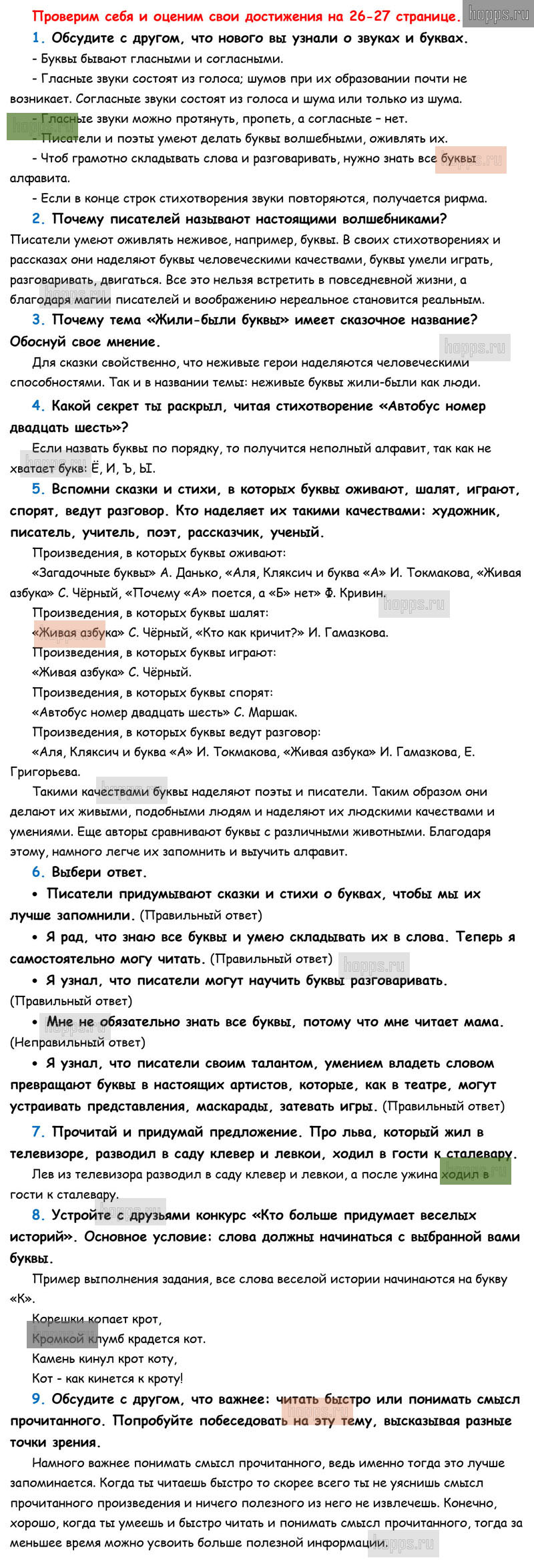 Подробные ответы к вопросам и заданиям проверим себя на 26-27 странице 1 части учебника по литературному чтению авторов Л.Ф. Климанова, В.Г. Горецкий, М.В. Голованова для учащихся 1 класса.