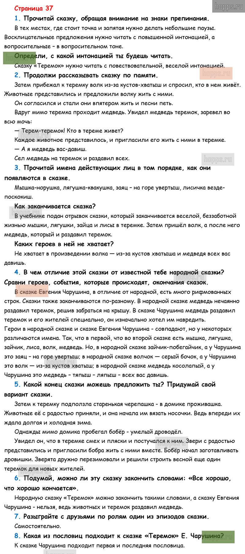 Подробные ответы к вопросам, расположенным на 37 странице 1 части учебника по литературному чтению авторов Л.Ф. Климанова, В.Г. Горецкий, М.В. Голованова для учащихся 1 класса.