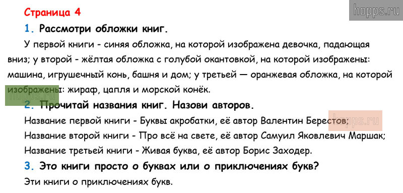Ответы к вопросам и заданиям на 4 странице учебника по литературному чтению Л.Ф. Климанова, В.Г. Горецкий, М.В. Голованова за 1 класс 1 часть | Источник: Hopps.ru
