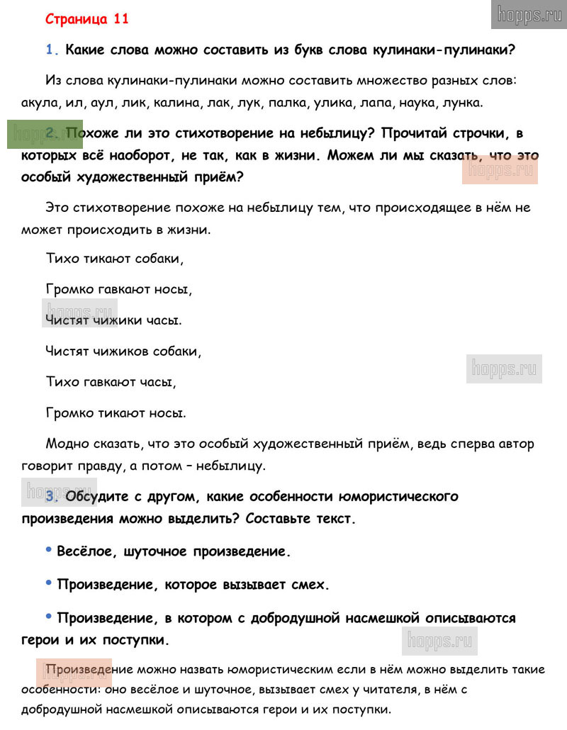 Готовые ответы к вопросам и заданиям на 11 странице 2 части учебнику по литературному чтению для учащихся 1 класса, авторов Л.Ф. Климанова, В.Г. Горецкий, М.В. Голованова, Школа России, 2019 г.