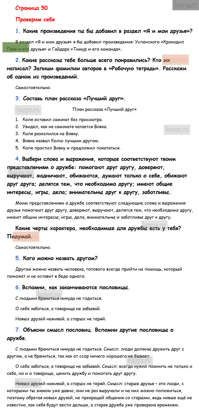 Готовые ответы к вопросам и заданиям на 50 странице 2 части учебнику по литературному чтению для учащихся 1 класса, авторов Л.Ф. Климанова, В.Г. Горецкий, М.В. Голованова, Школа России, 2019 г.