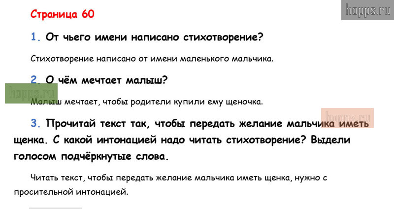 Готовые ответы к вопросам и заданиям на 60 странице 2 части учебнику по литературному чтению для учащихся 1 класса, авторов Л.Ф. Климанова, В.Г. Горецкий, М.В. Голованова, Школа России, 2019 г.