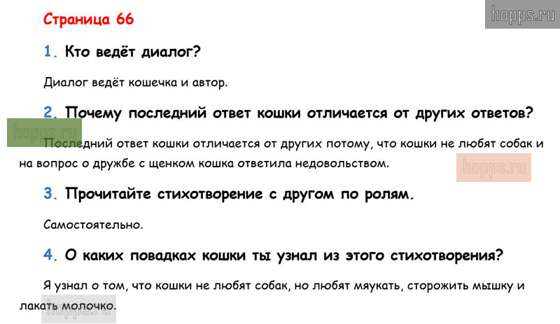 Готовые ответы к вопросам и заданиям на 66 странице 2 части учебнику по литературному чтению для учащихся 1 класса, авторов Л.Ф. Климанова, В.Г. Горецкий, М.В. Голованова, Школа России, 2019 г.