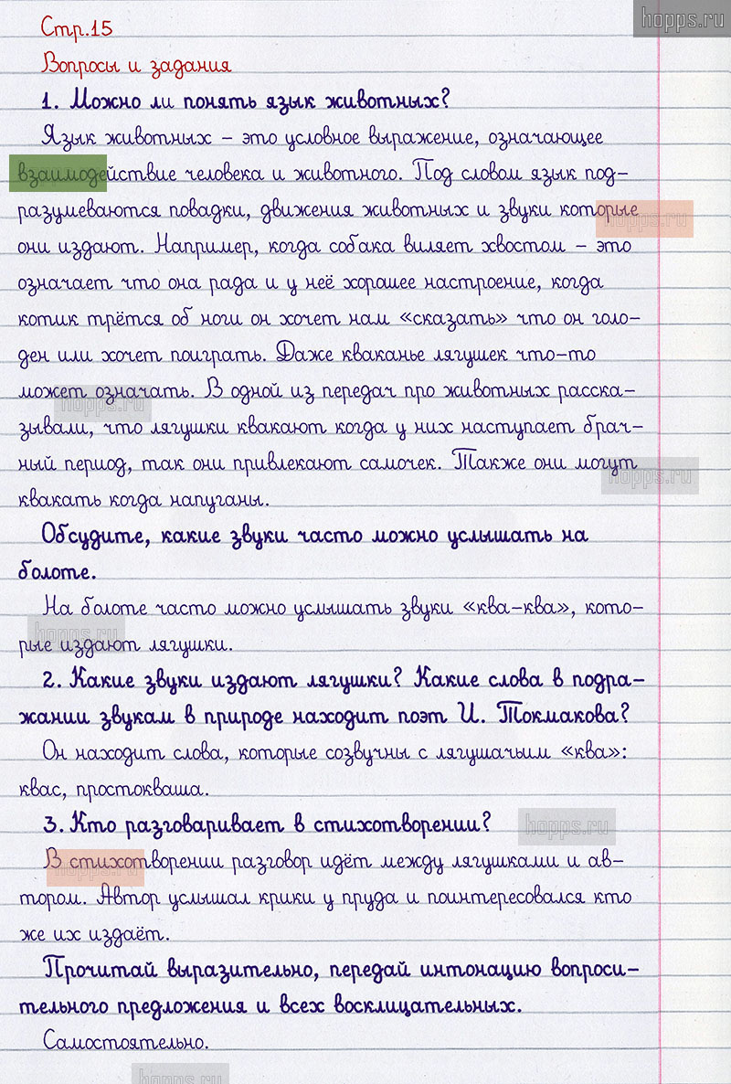Подробные ответы к вопросам, расположенным на 15 странице 2 части учебника 2019 года по литературному чтению авторов Л.Ф. Климанова, В.Г. Горецкий, Л.А. Виноградская для учащихся 1 класса.