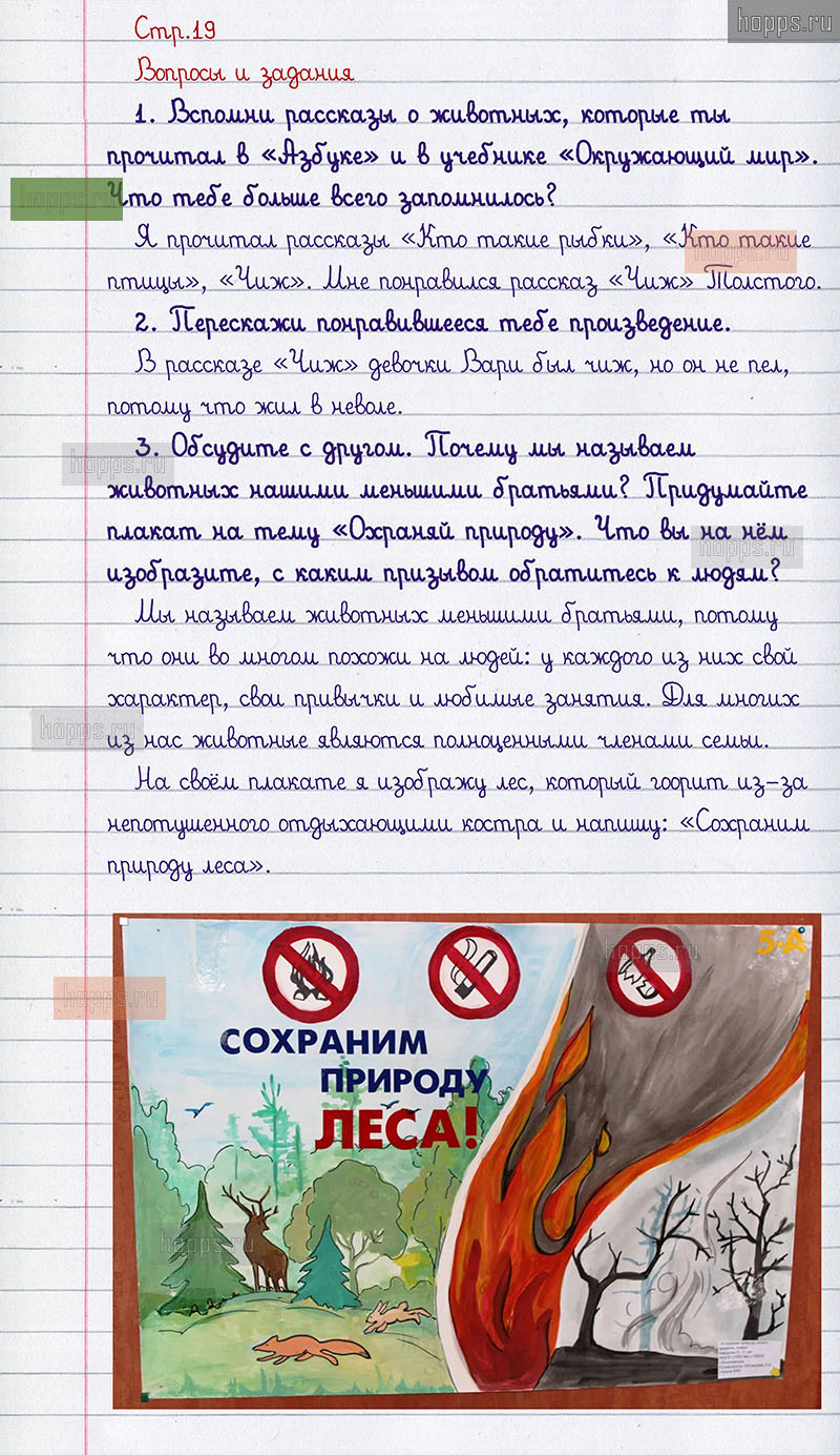 Подробные ответы к вопросам, расположенным на 19 странице 2 части учебника 2011 года по литературному чтению авторов Л.Ф. Климанова, В.Г. Горецкий, Л.А. Виноградская для учащихся 1 класса.