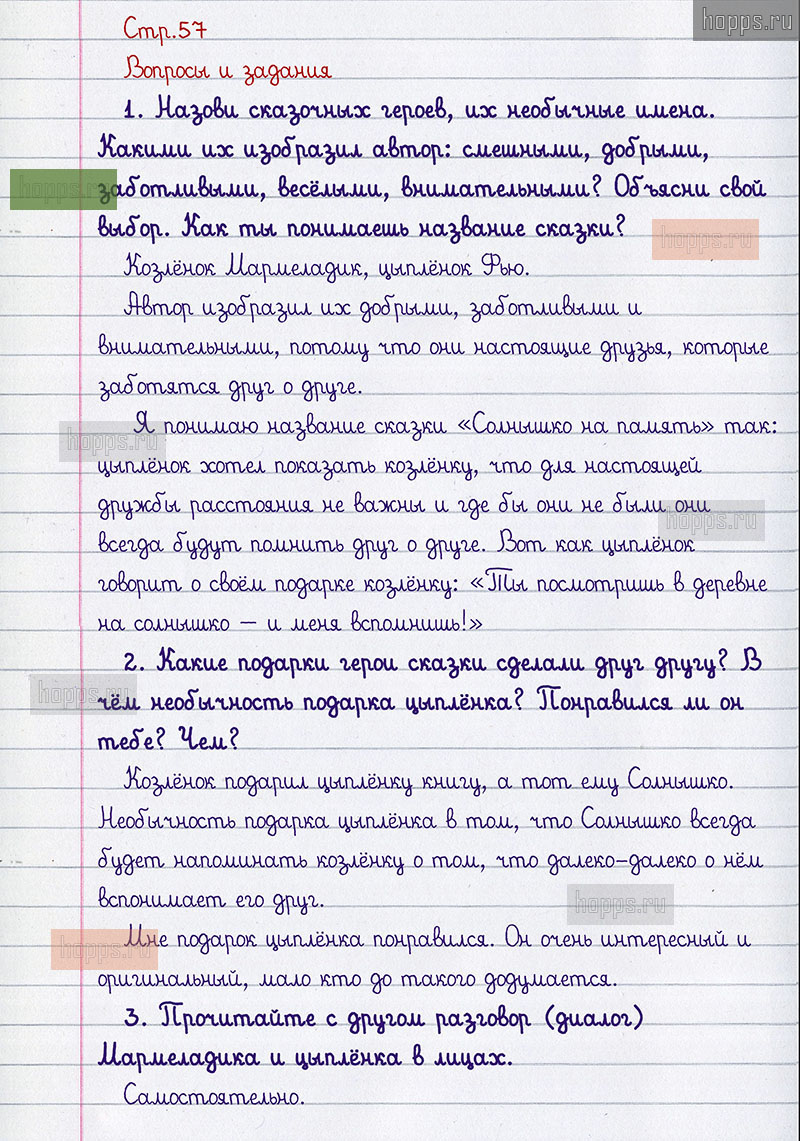 Подробные ответы к вопросам, расположенным на 57 странице 2 части учебника 2011 года по литературному чтению авторов Л.Ф. Климанова, В.Г. Горецкий, Л.А. Виноградская для учащихся 1 класса.