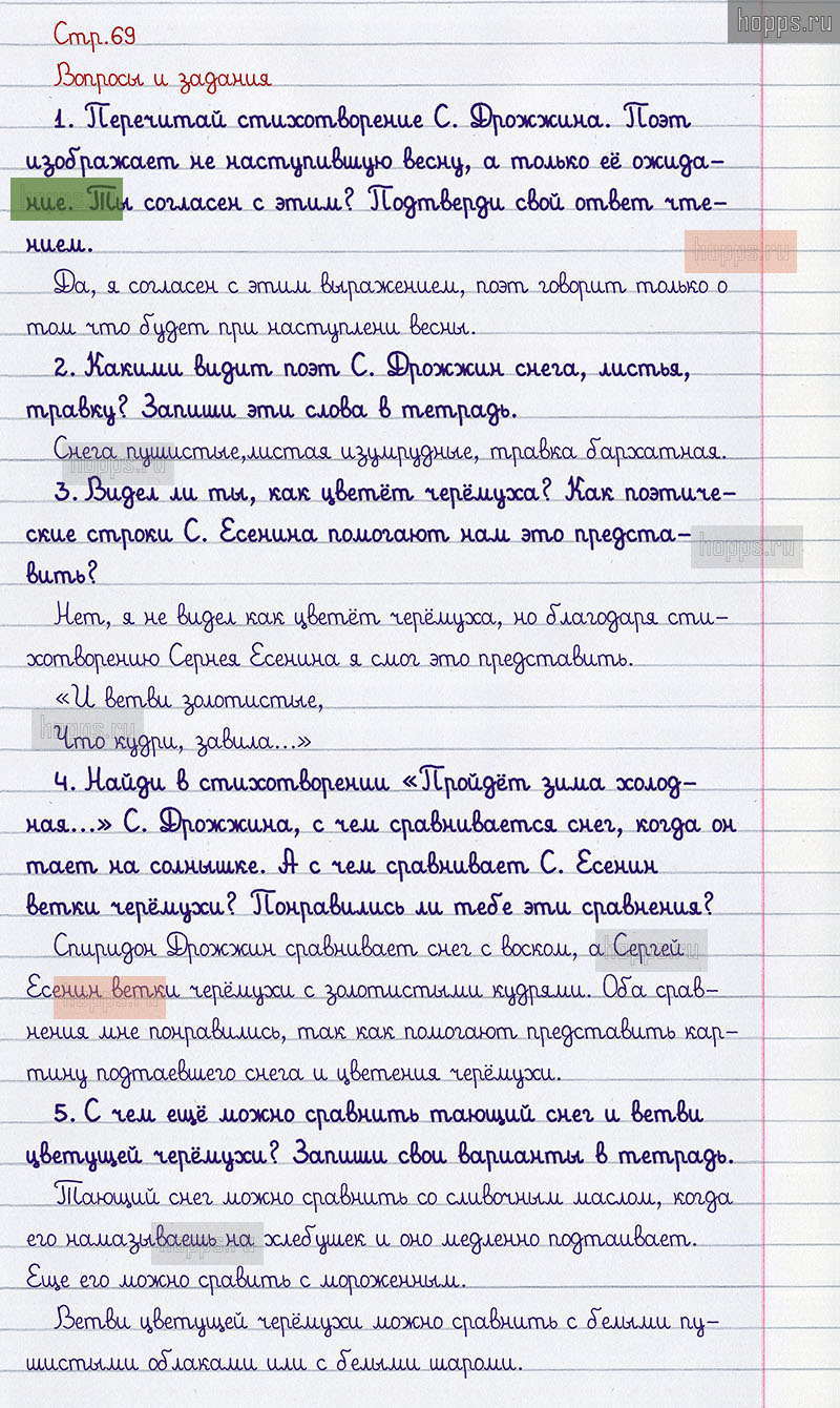 Подробные ответы к вопросам, расположенным на 69 странице 2 части учебника 2019 года по литературному чтению авторов Л.Ф. Климанова, В.Г. Горецкий, Л.А. Виноградская для учащихся 1 класса.