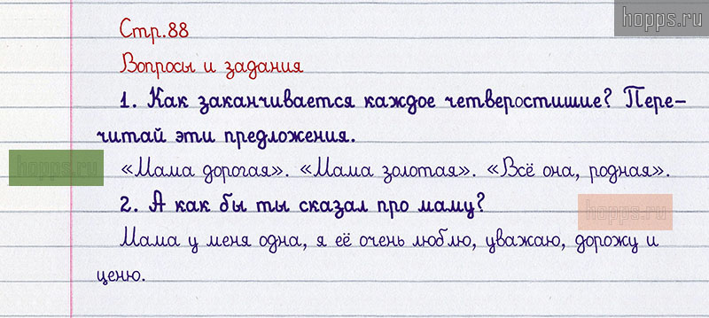 Подробные ответы к вопросам, расположенным на 88 странице 2 части учебника 2019 года по литературному чтению авторов Л.Ф. Климанова, В.Г. Горецкий, Л.А. Виноградская для учащихся 1 класса.