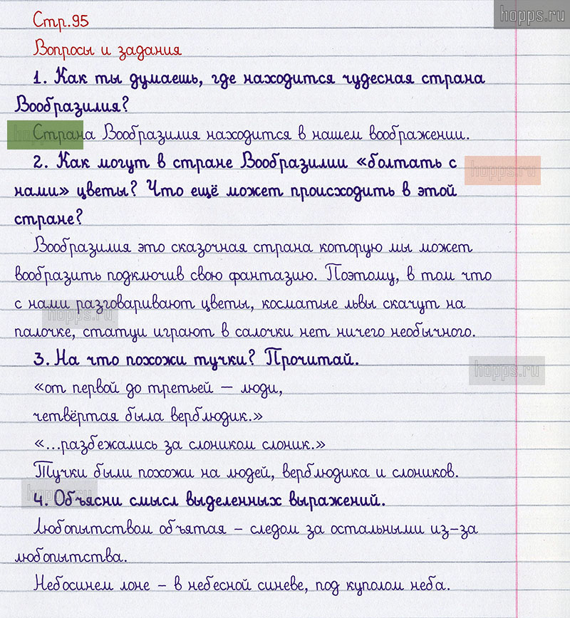 Подробные ответы к вопросам, расположенным на 95 странице 2 части учебника 2019 года по литературному чтению авторов Л.Ф. Климанова, В.Г. Горецкий, Л.А. Виноградская для учащихся 1 класса.