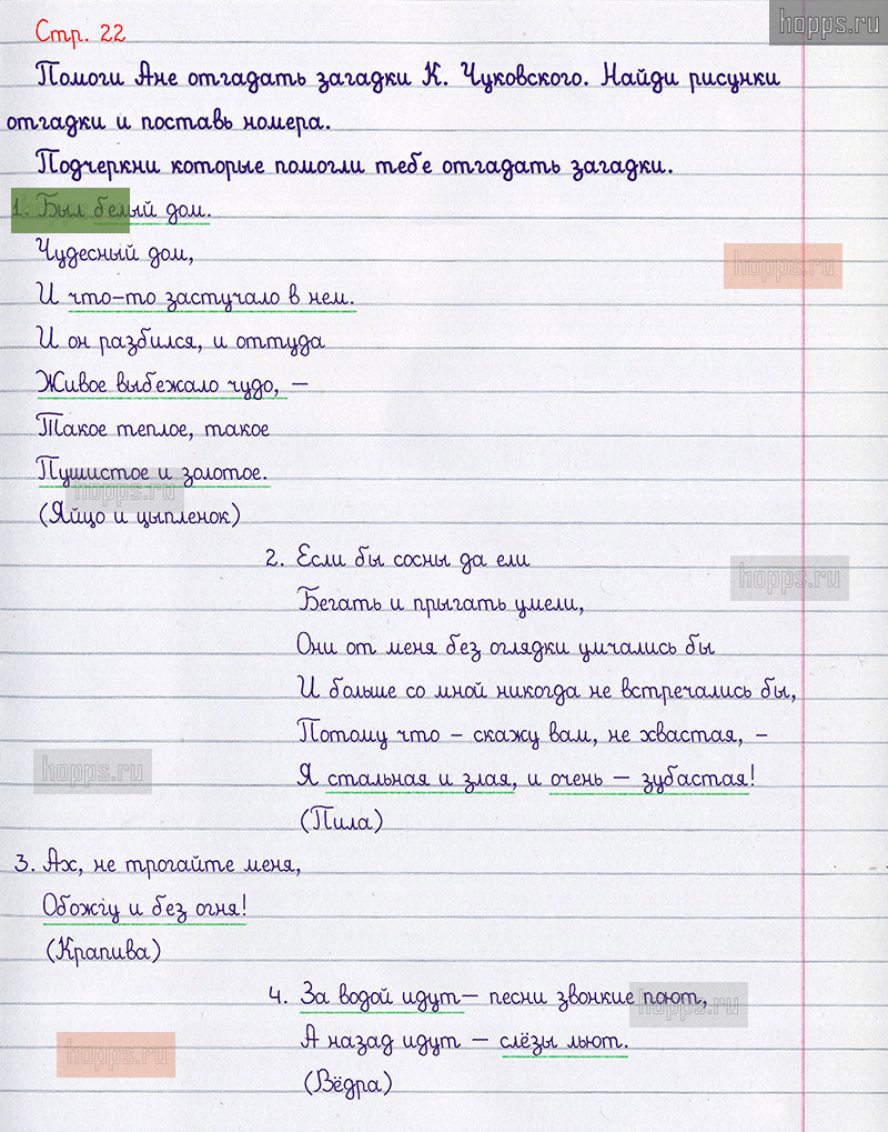 Подробные ответы к вопросам и заданиям, расположенным на 22 странице творческой тетради по литературному чтению авторов Л.Ф. Климанова, Т.Ю. Коти для учащихся 1 класса.
