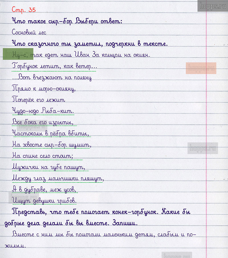 Подробные ответы к вопросам и заданиям, расположенным на 35 странице творческой тетради по литературному чтению авторов Л.Ф. Климанова, Т.Ю. Коти для учащихся 1 класса.