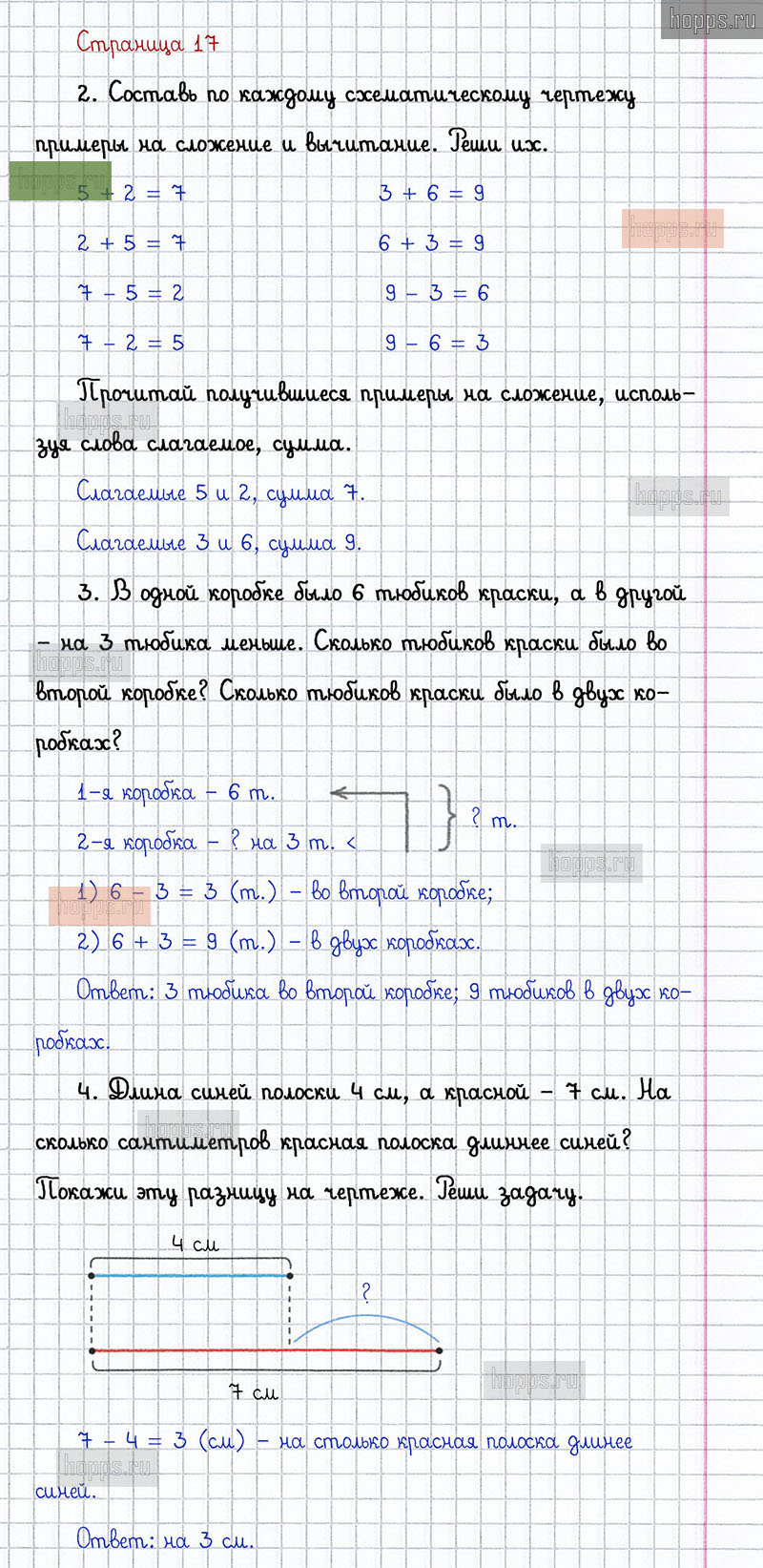 Подробные ответы к заданиям, расположенным на 17 странице 2 части учебника 2019 года по математике авторов Г.В. Дорофеев, Т.Н. Миракова, Т.Б. Бука для учащихся 1 класса.
