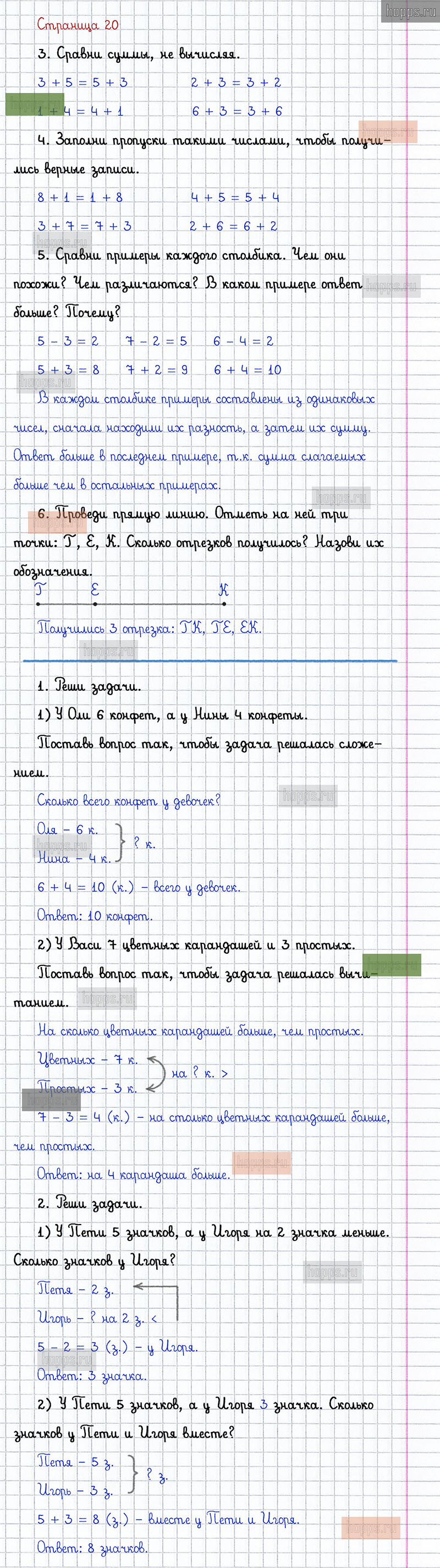Подробные ответы к заданиям, расположенным на 20 странице 2 части учебника 2019 года по математике авторов Г.В. Дорофеев, Т.Н. Миракова, Т.Б. Бука для учащихся 1 класса.