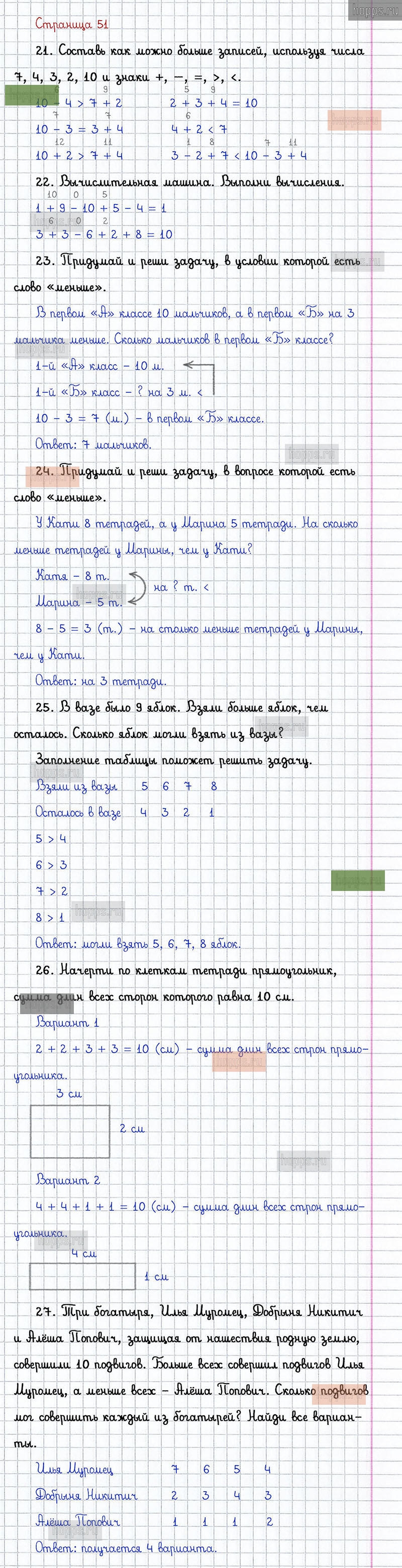 Подробные ответы к заданиям, расположенным на 51 странице 2 части учебника 2019 года по математике авторов Г.В. Дорофеев, Т.Н. Миракова, Т.Б. Бука для учащихся 1 класса.