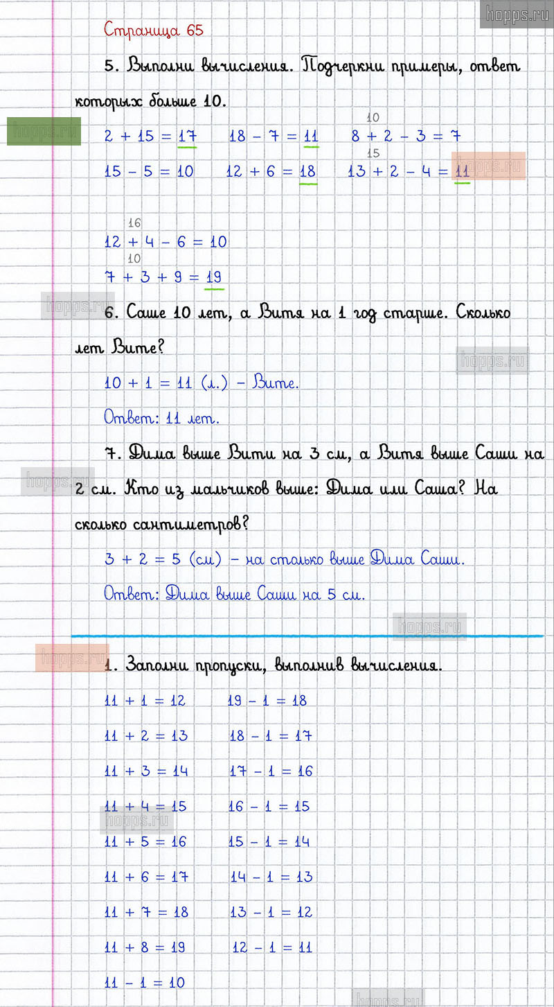Подробные ответы к заданиям, расположенным на 65 странице 2 части учебника 2019 года по математике авторов Г.В. Дорофеев, Т.Н. Миракова, Т.Б. Бука для учащихся 1 класса.