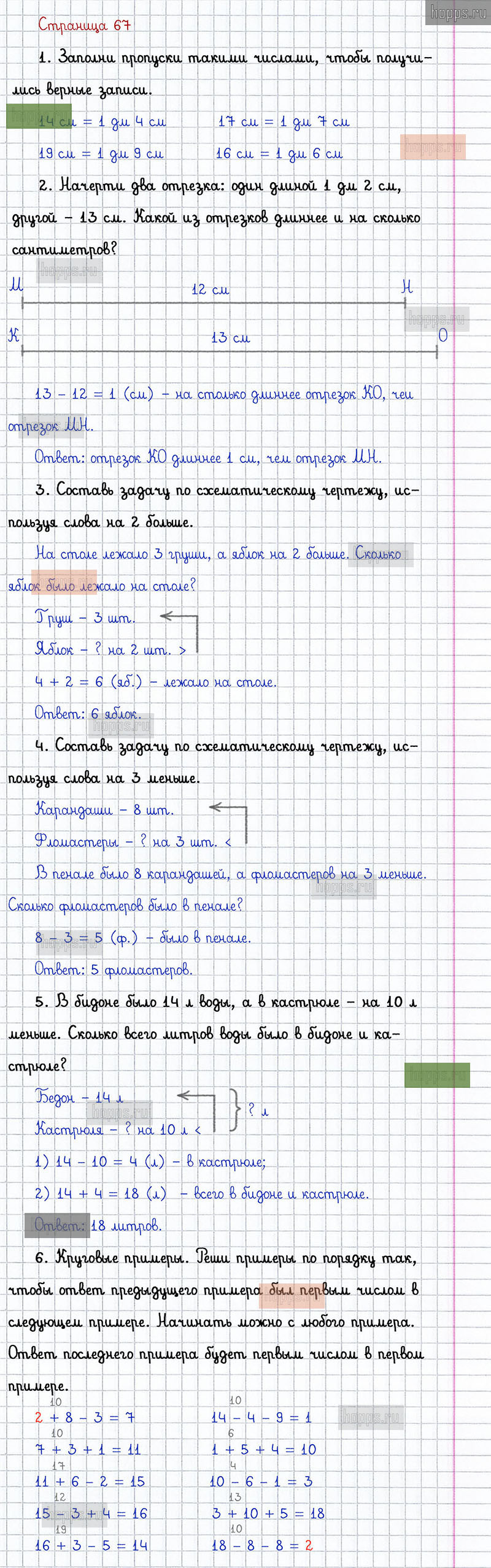 Подробные ответы к заданиям, расположенным на 67 странице 2 части учебника 2019 года по математике авторов Г.В. Дорофеев, Т.Н. Миракова, Т.Б. Бука для учащихся 1 класса.