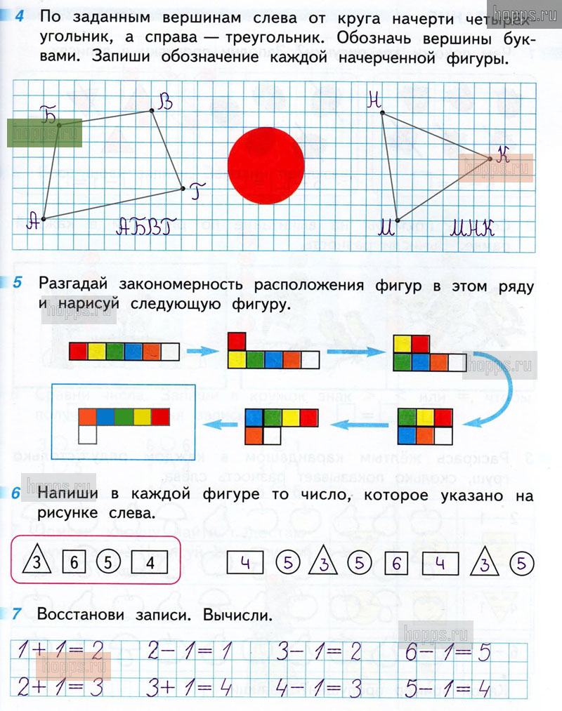 Подробные ответы к заданиям на 63 странице 1 части рабочей тетради по математике Г. В. Дорофеев, Т. Н. Миракова, Т. Б. Бука для учащихся 1 класса.