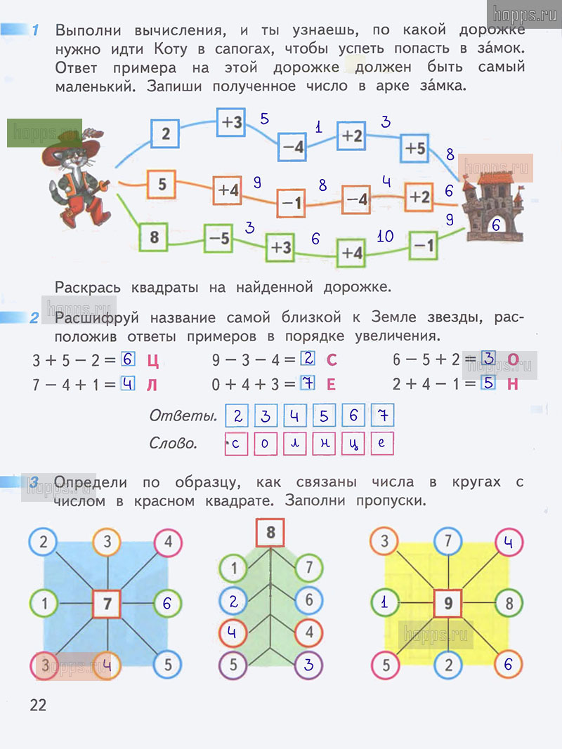 Подробные ответы к заданиям на 22 странице 1 части рабочей тетради по математике Г. В. Дорофеев, Т. Н. Миракова, Т. Б. Бука для учащихся 1 класса.