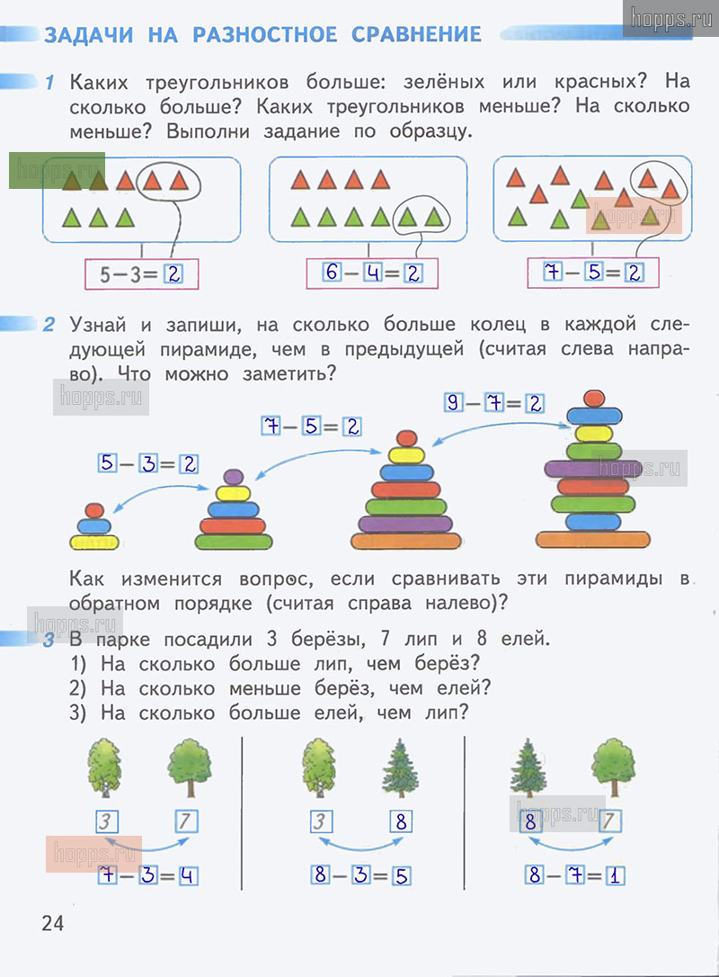 Подробные ответы к заданиям на 24 странице 1 части рабочей тетради по математике Г. В. Дорофеев, Т. Н. Миракова, Т. Б. Бука для учащихся 1 класса.