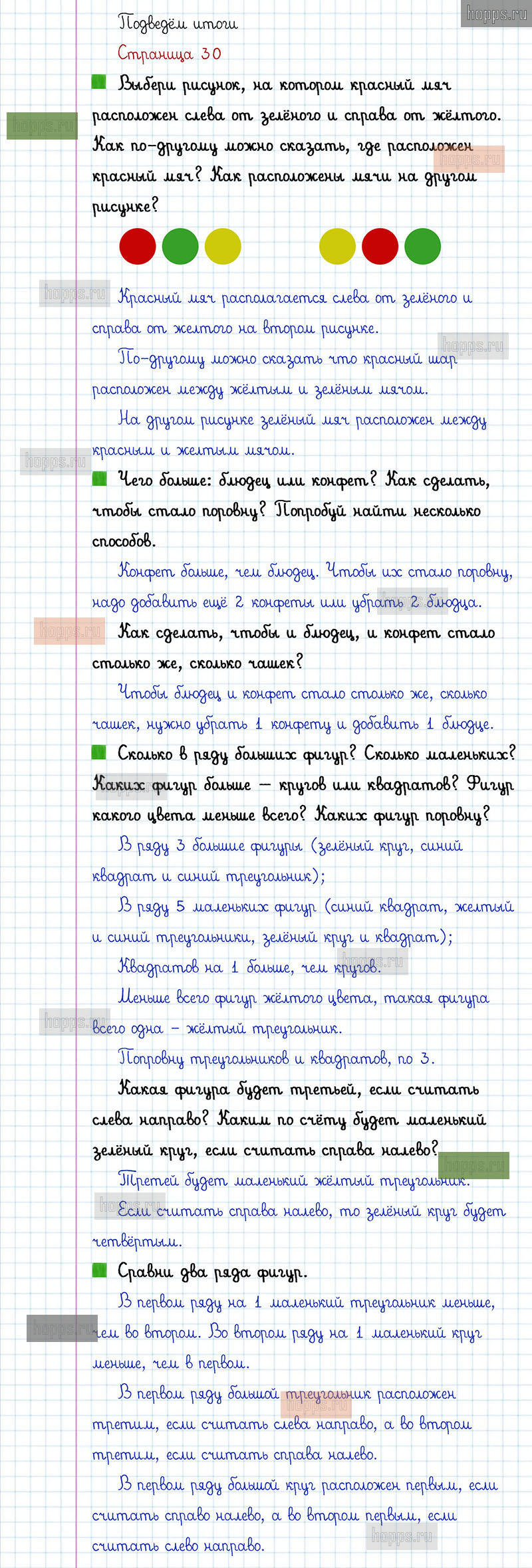 Подробные ответы к заданиям, расположенным на 30 странице 1 части учебника 2019 года по математике авторов Г.В. Дорофеев, Т.Н. Миракова, Т.Б. Бука для учащихся 1 класса.